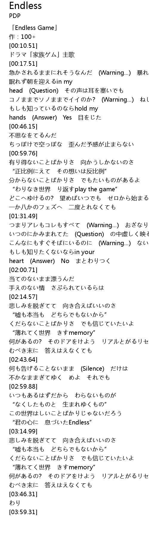 | [03:12.49] | “君の心に 息づいたEndless” |