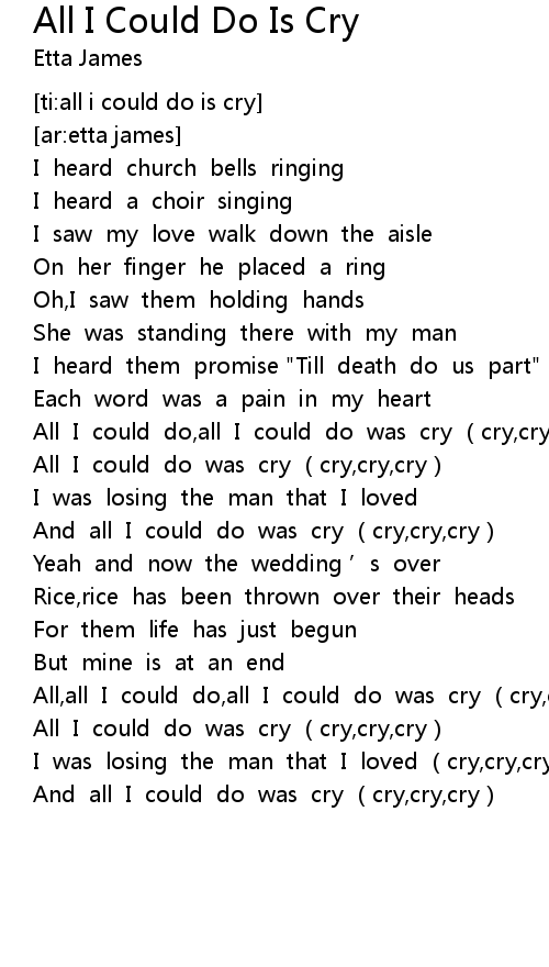 | [01:12.784] | All I could do, all I could do was cry cry, cry, cry |