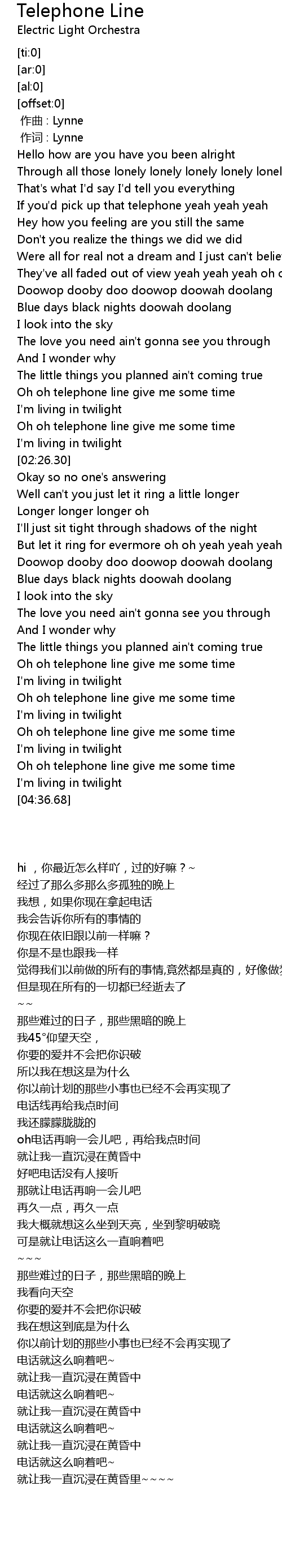 | [04:26.51] | Oh oh telephone line give me some time |