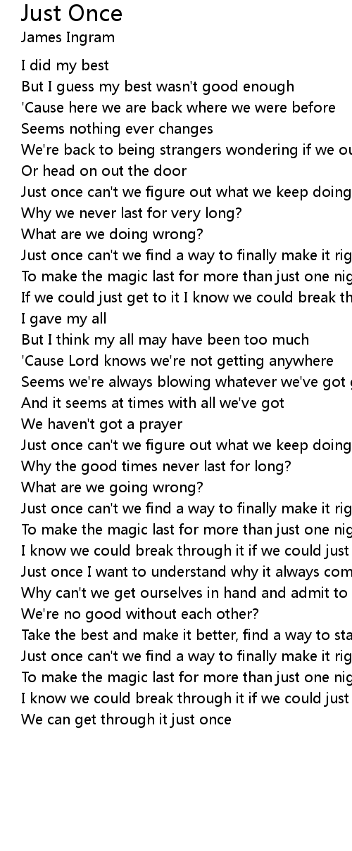 Just once can't we find a way to finally make it right? |