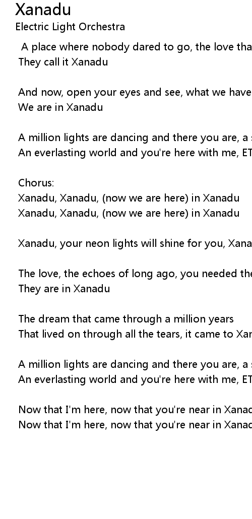 Xanadu, Xanadu, (now we are here) in Xanadu |
