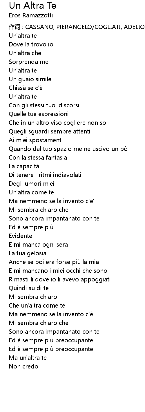 | 作词 : CASSANO, PIERANGELO/COGLIATI, ADELIO/RAMAZOTTI, EROS | |