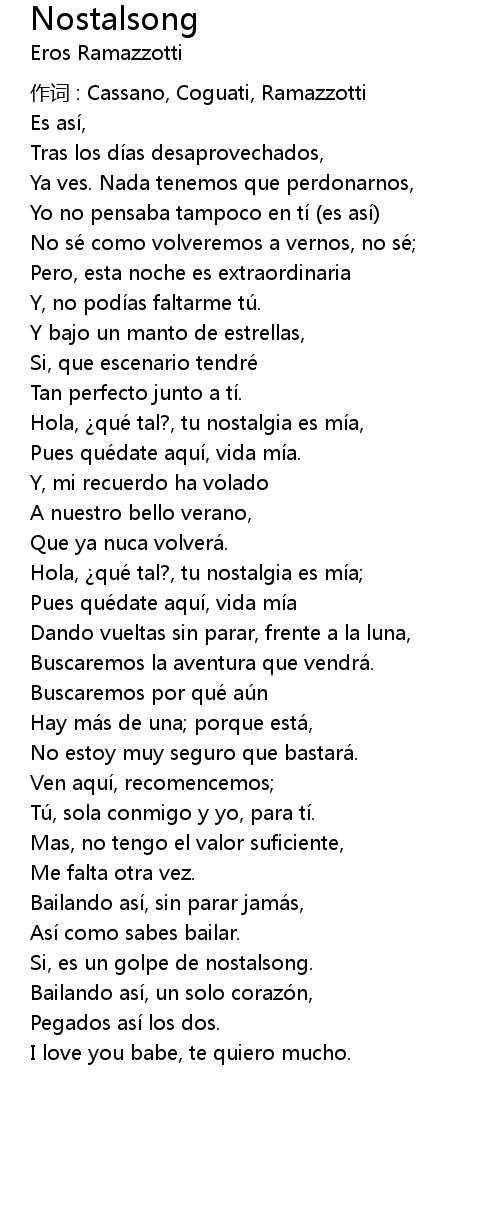 | Hola, ¿qué tal?, tu nostalgia es mía, | |