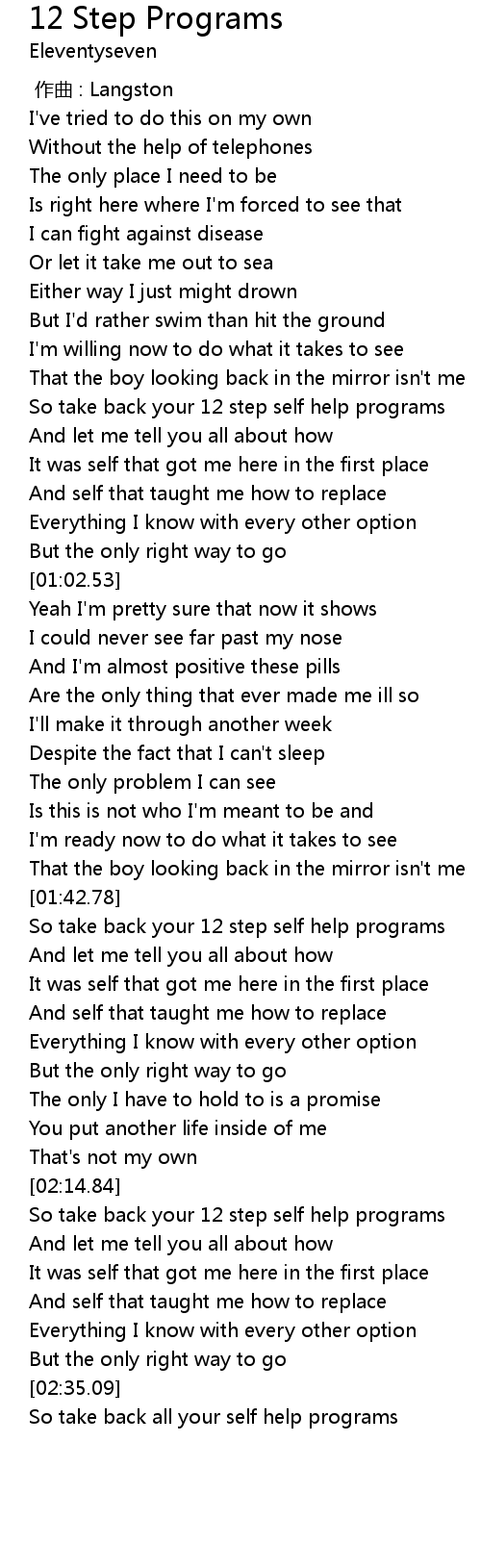 | [00:43.72] | So take back your 12 step self help programs |