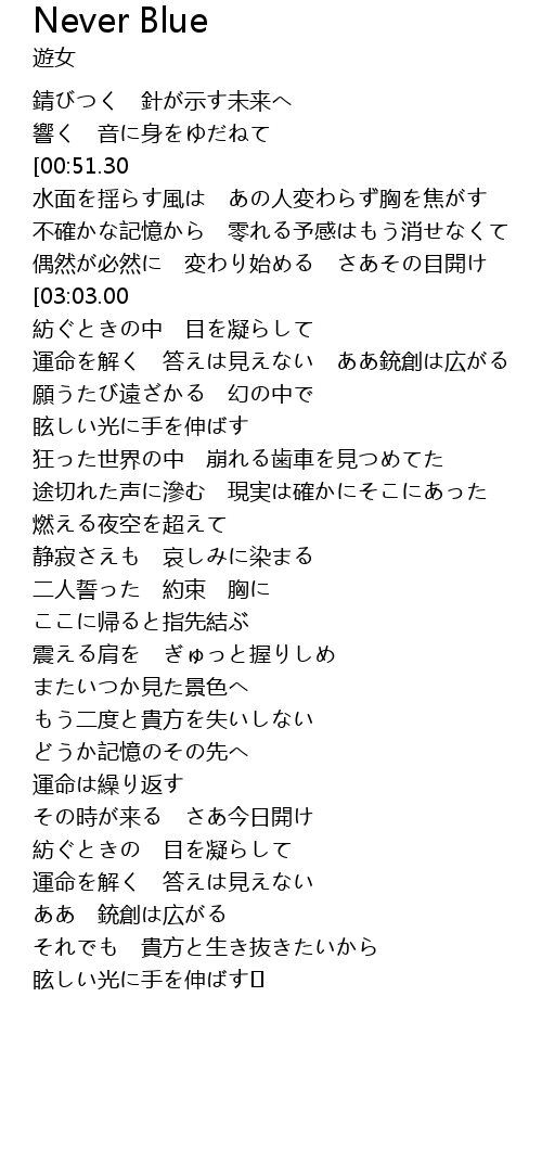 | [00:00.00] | 錆びつく 針が示す未来へ |