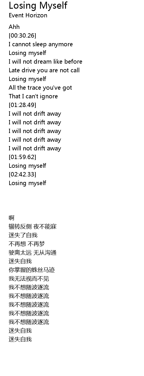 | [02:51.62] | 迷失自我 |