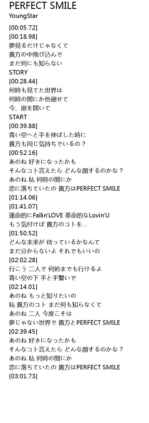 | [02:56.80] | 恋に落ちていたの 貴方はPERFECT SMILE |