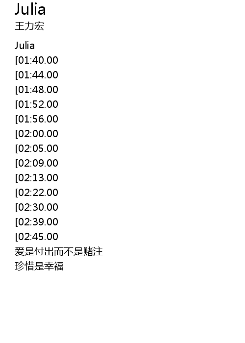 | [01:14.00][02:30.00][03:37.00][04:11.00] | Julia Julia bu yao rang ai qing ku wei |
