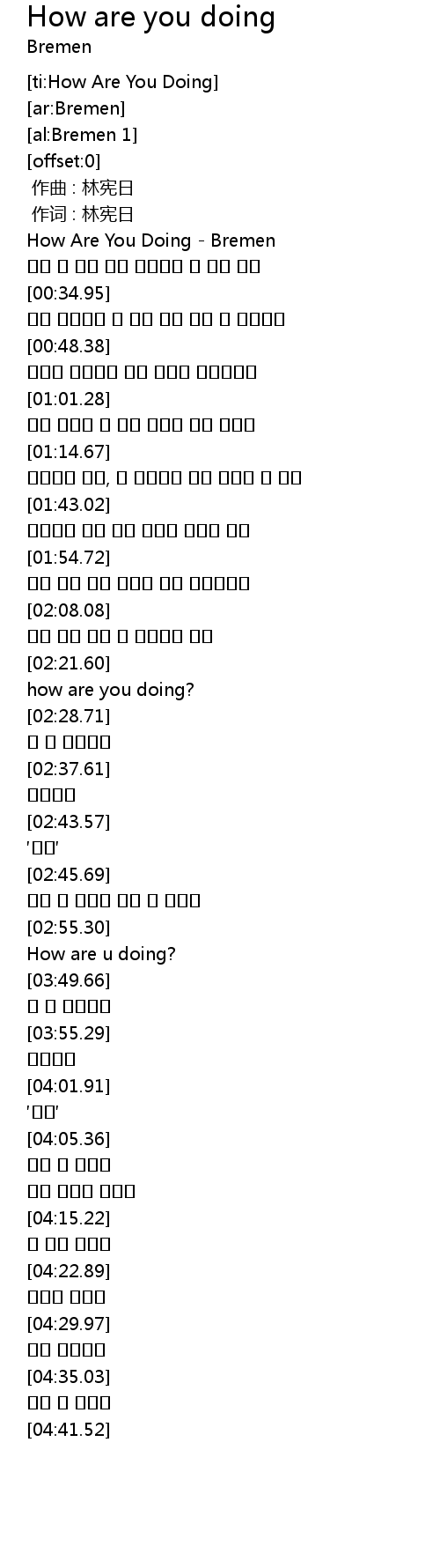 | [00:01.24] | How Are You Doing - Bremen |
