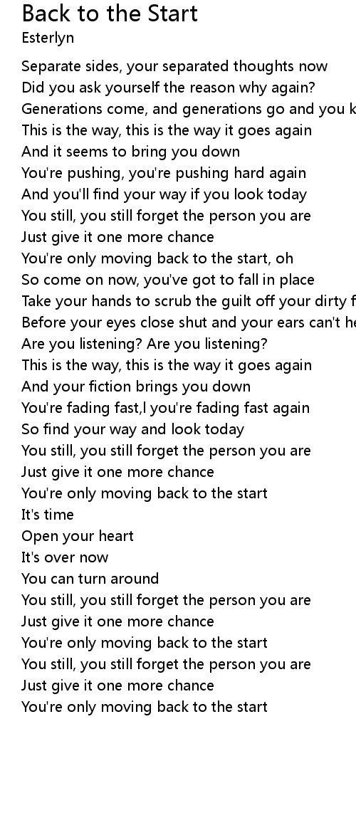 | You're only moving back to the start, oh | |