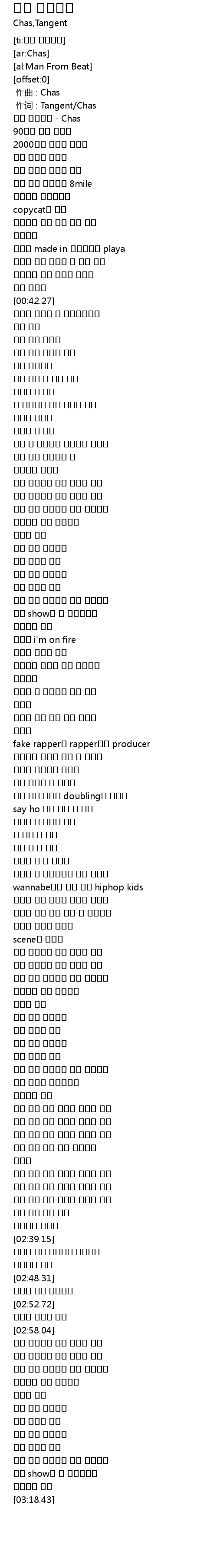 | [00:00.75] | 랩을 하랬더니 - Chas |