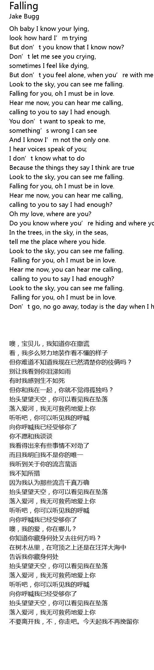 | [00:41] | 抬头望望天空,你可以看见我在坠落 |