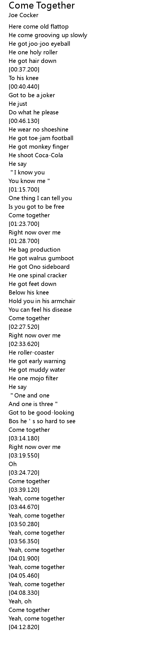 | [04:06.800] | Yeah, come together |