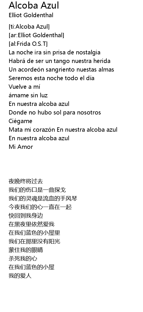 | [01:09] | Mata mi corazón En nuestra alcoba azul |
