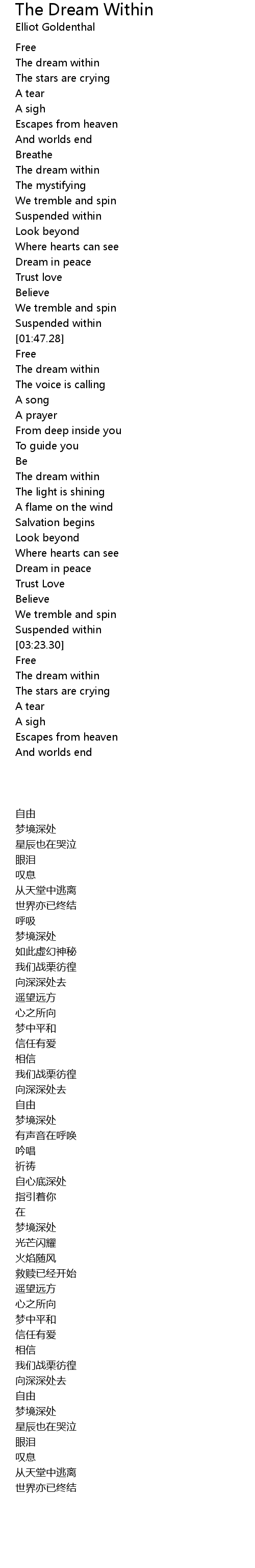 | [00:14.53] | The dream within |
