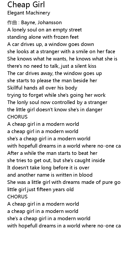 | she' s a cheap girl in a modern world | |
