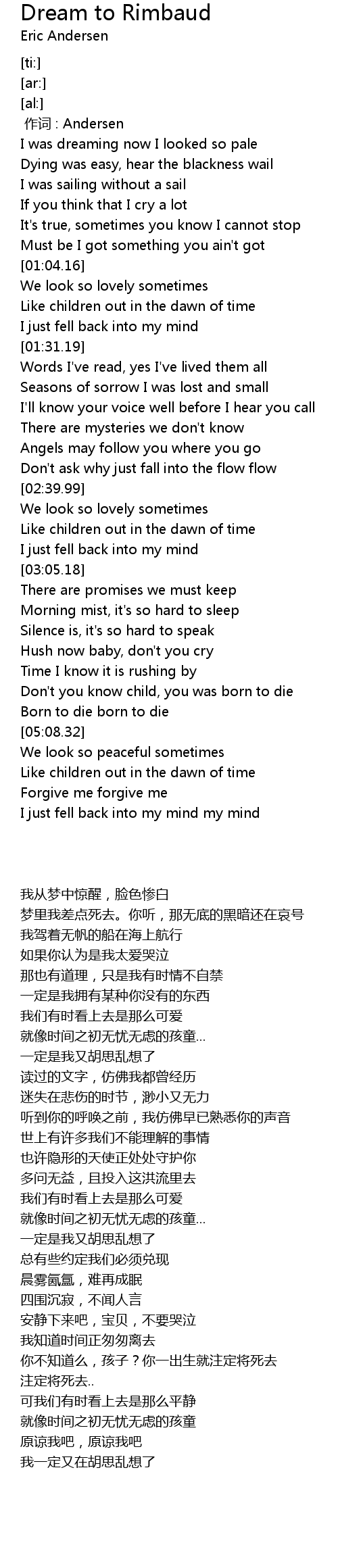 | [00:23.16] | 梦里我差点死去。你听,那无底的黑暗还在哀号 |