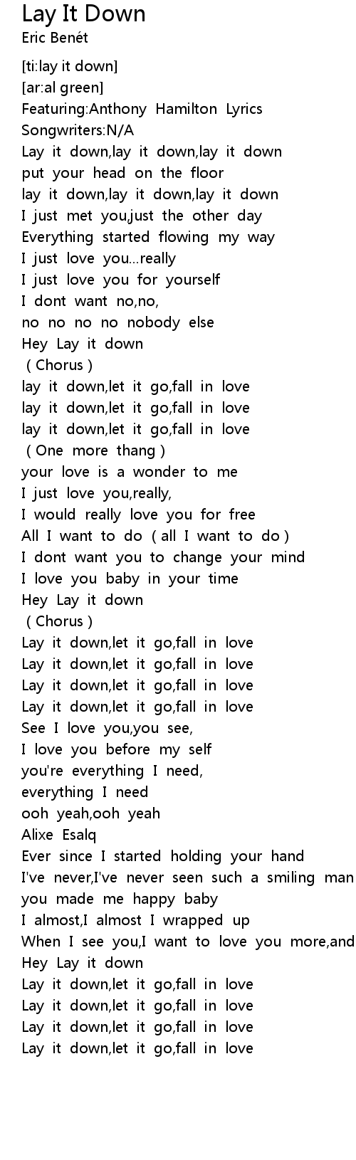 | [00:17.143] | Lay it down, lay it down, lay it down |