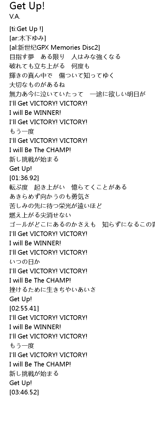 | [02:35.98] | I' ll Get VICTORY! VICTORY! |
