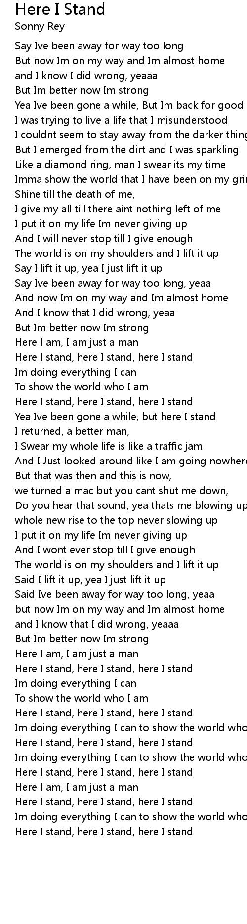 Here I stand, here I stand, here I stand |