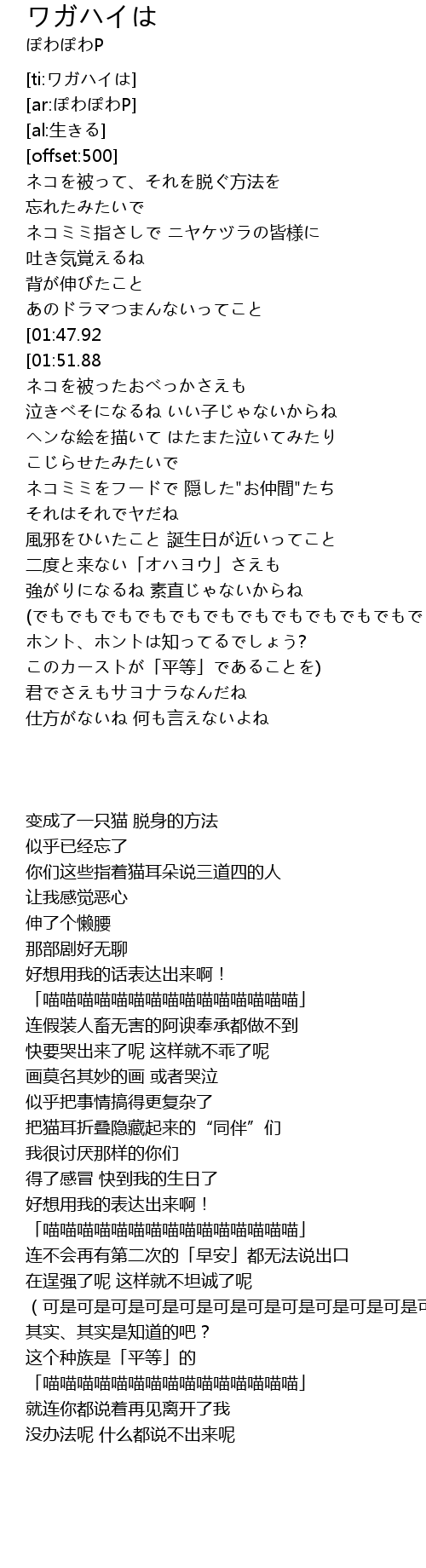 | [01:51.88] | 「喵喵喵喵喵喵喵喵喵喵喵喵喵喵喵」 |