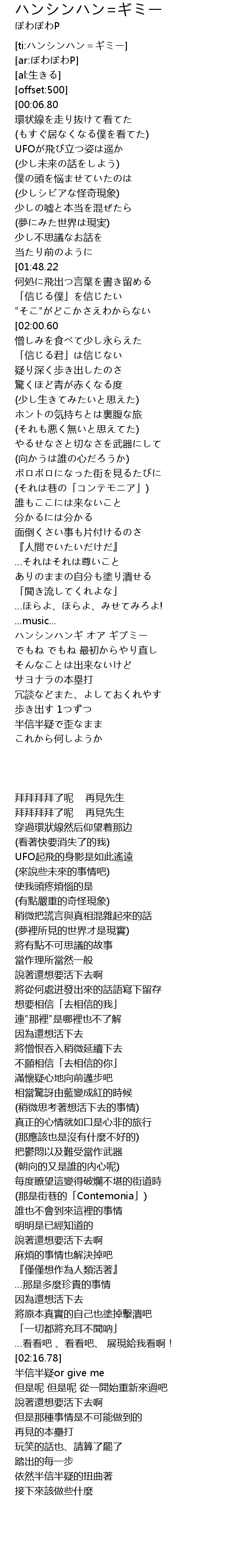 | [02:43.03] | ハンシンハンギ オア ギブミー |
