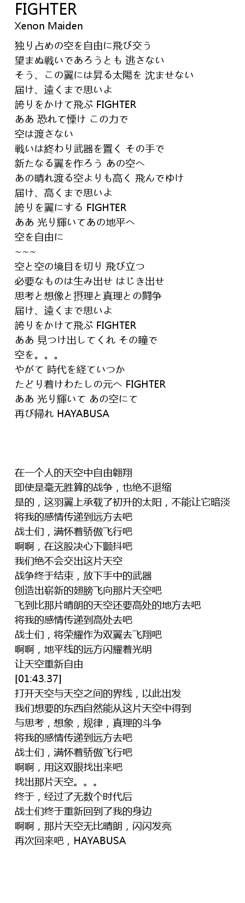 | [03:23.97] | zhe yuán FIGHTER |