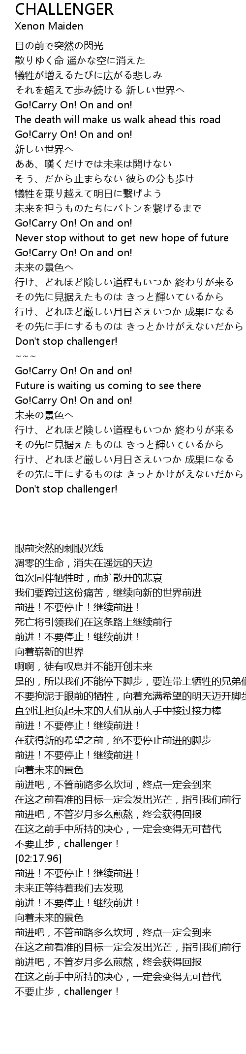 | [02:08.99] | Don' t stop challenger! |