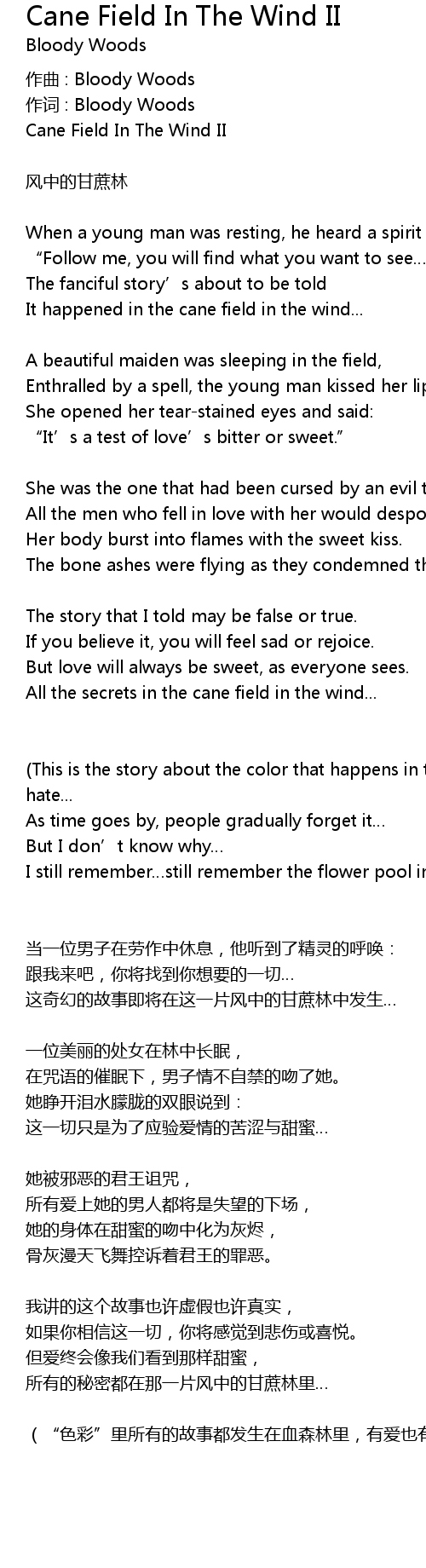 | (This is the story about the color that happens in the Bloody Woods, love but hate... | |