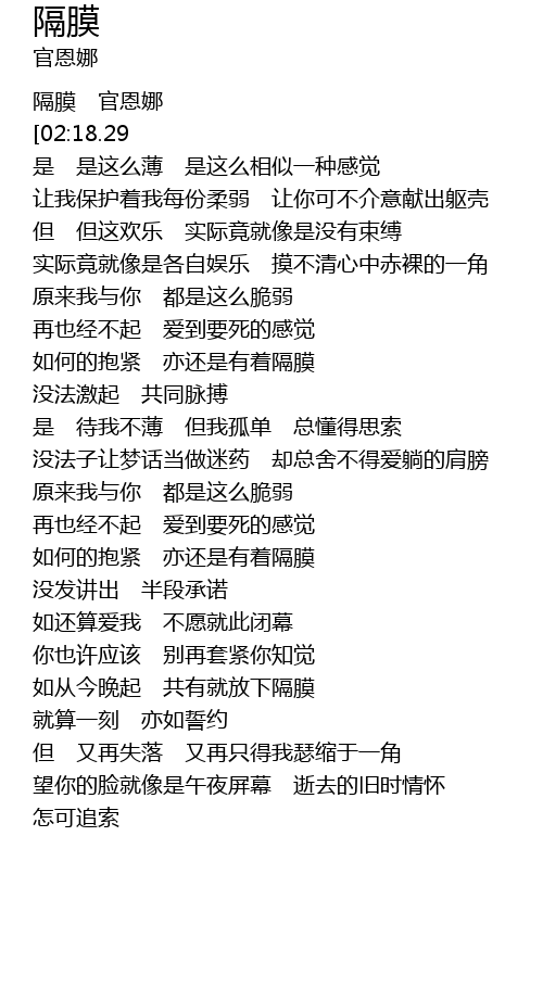 | [00:00.26] | 隔膜 官恩娜 |