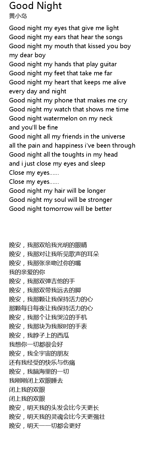 | [00:19.27] | Good night my eyes that give me light |