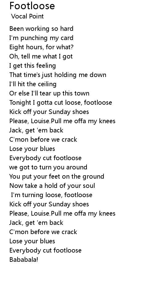 Tonight I gotta cut loose, footloose |