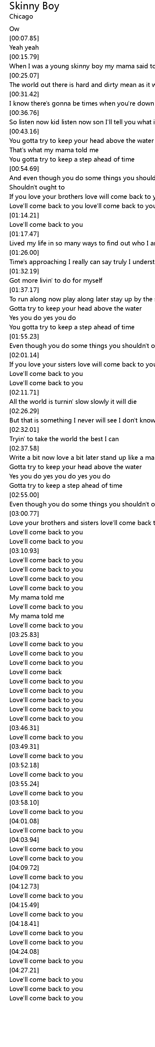 When I was a young skinny boy my mama said to me |