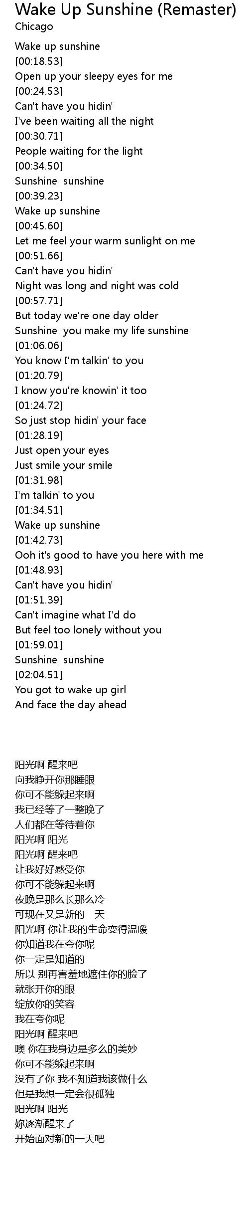 Sunshine sunshine |
