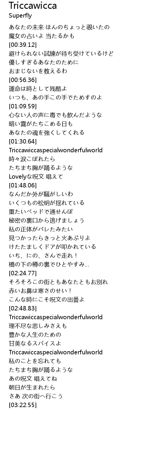 | [03:01.47] | Triccawiccaspecialwonderfulworld |