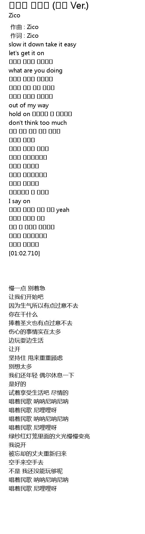 | [00:01.00] | 作词 : Zico |