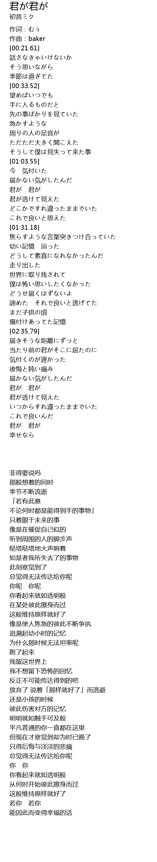 | [00:12.15] | 作曲:baker |