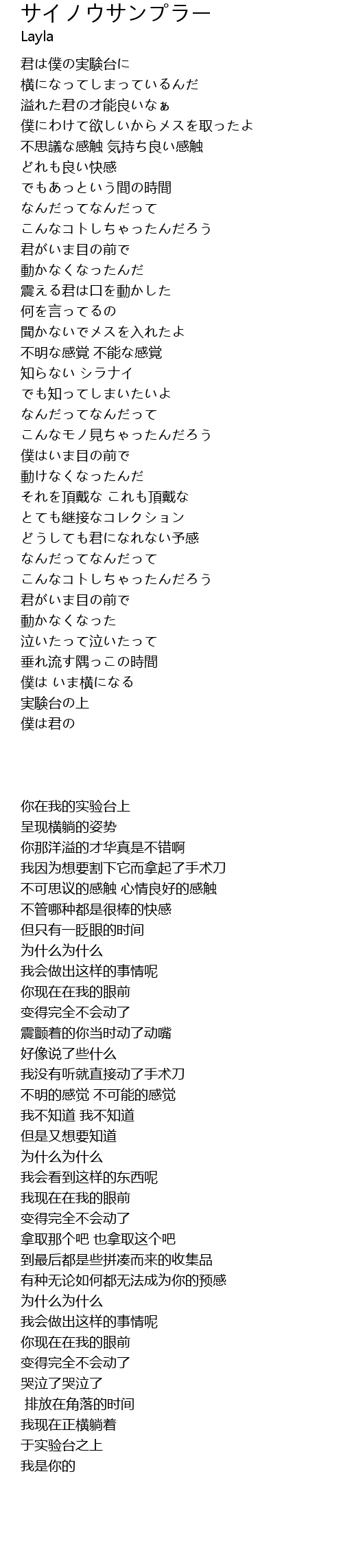 | [01:36.95] | 聞かないでメスを入れたよ |