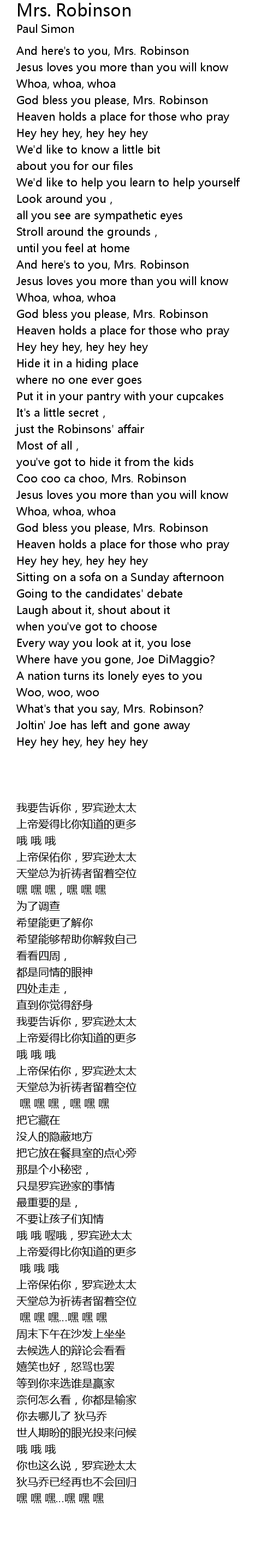 | 歌曲 | Mrs. Robinson |