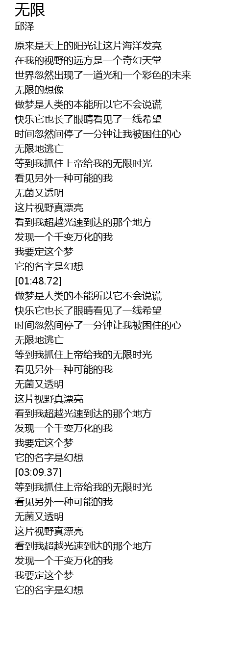 | [00:37.85] | wú xiàn de xiǎng xiàng |