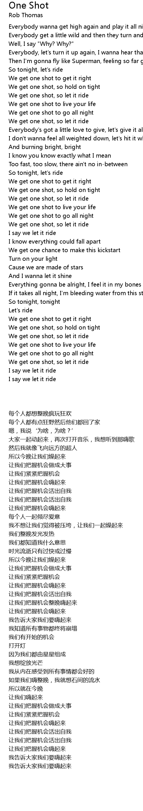 We get one shot to go all night |
