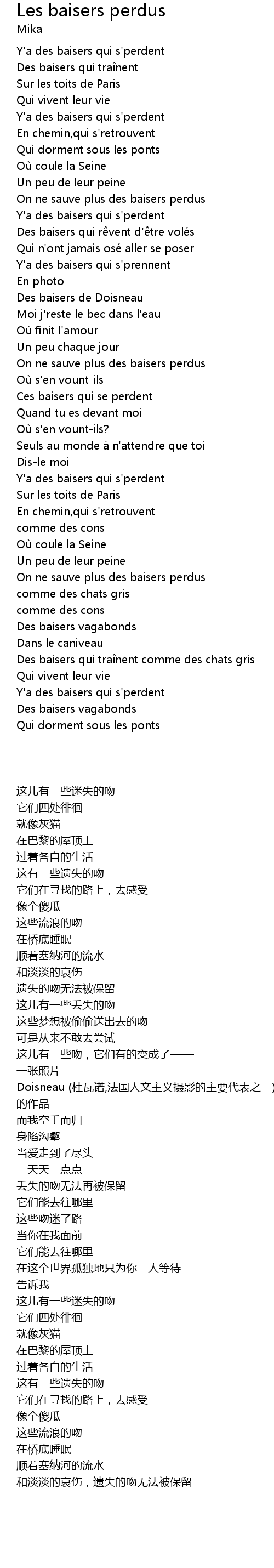 | 歌曲 | Les baisers perdus |