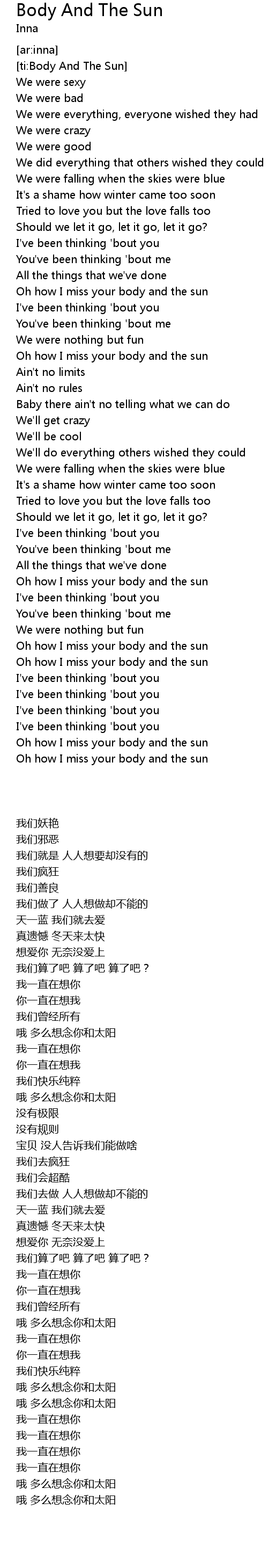 [ti:Body And The Sun] |