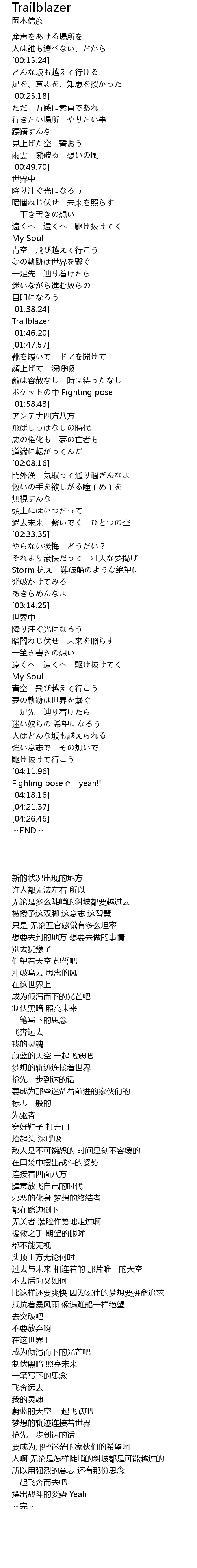 | [03:37.47] | 蔚蓝的天空 一起飞跃吧 |