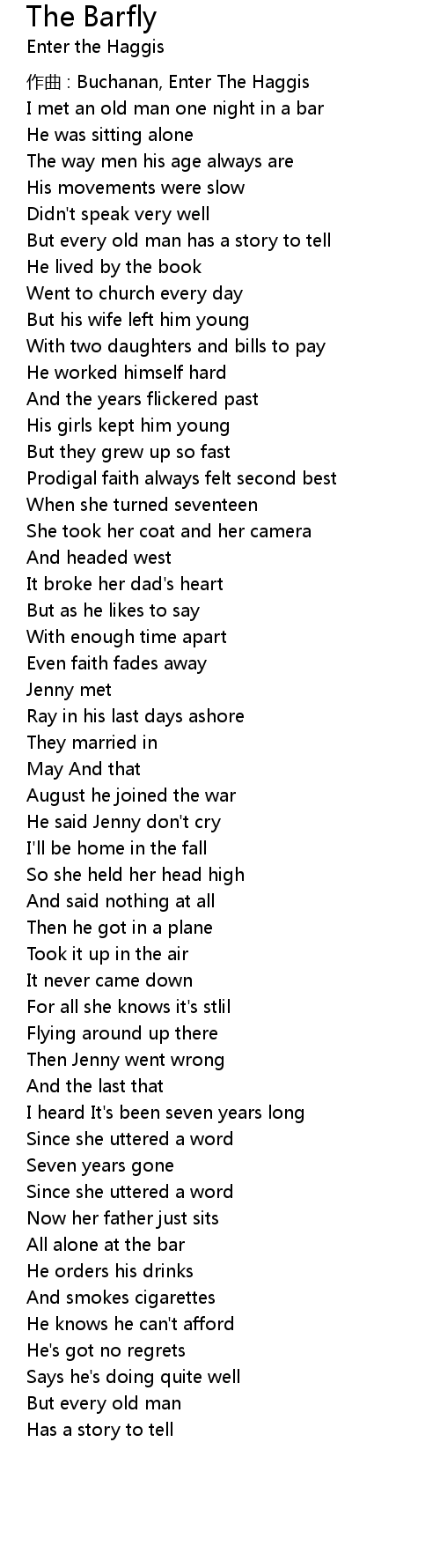 | 歌曲 | The Barfly |