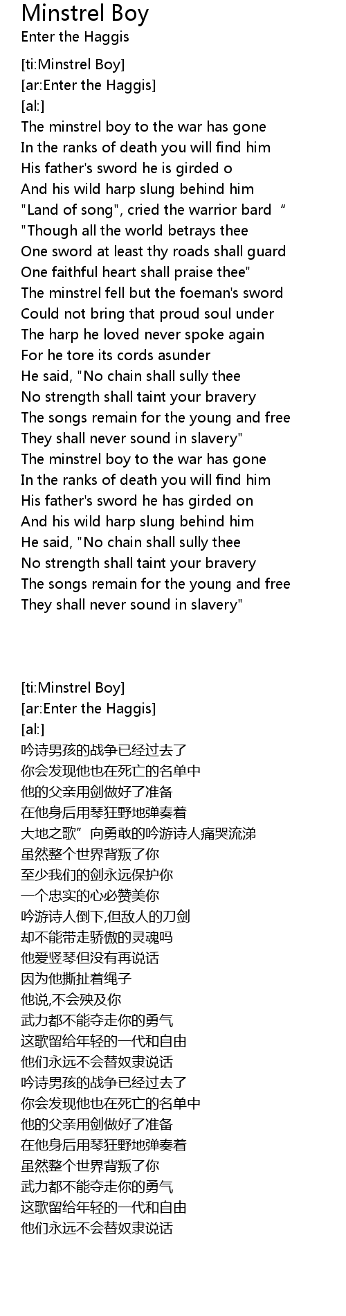 | [ti:Minstrel Boy] | |