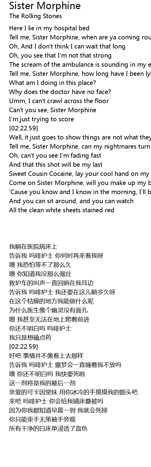 Tell me, Sister Morphine, can my nightmares turn into dreams? |