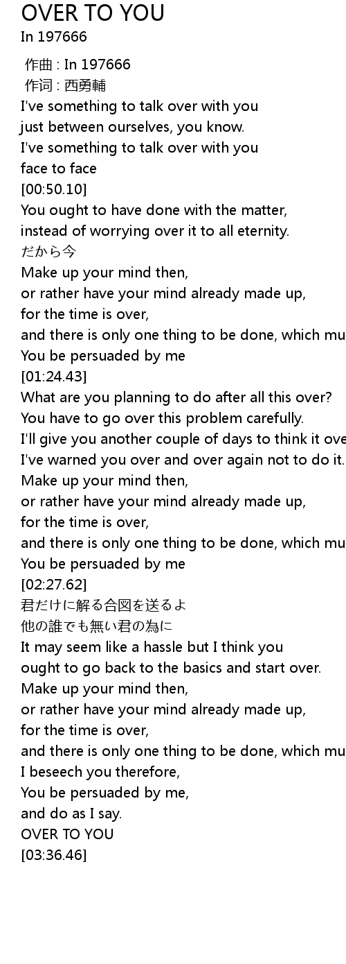 | [03:33.69] | OVER TO YOU |