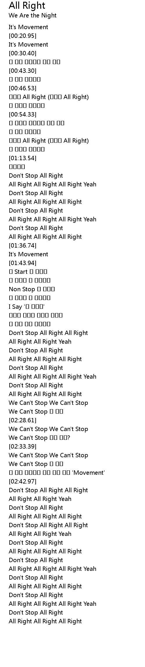 | [02:16.75] | All Right All Right All Right Yeah |