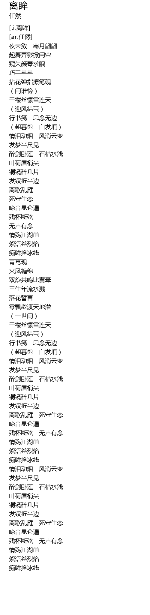 | [03:33.310] | 离歌乱雁 死守生恋 |